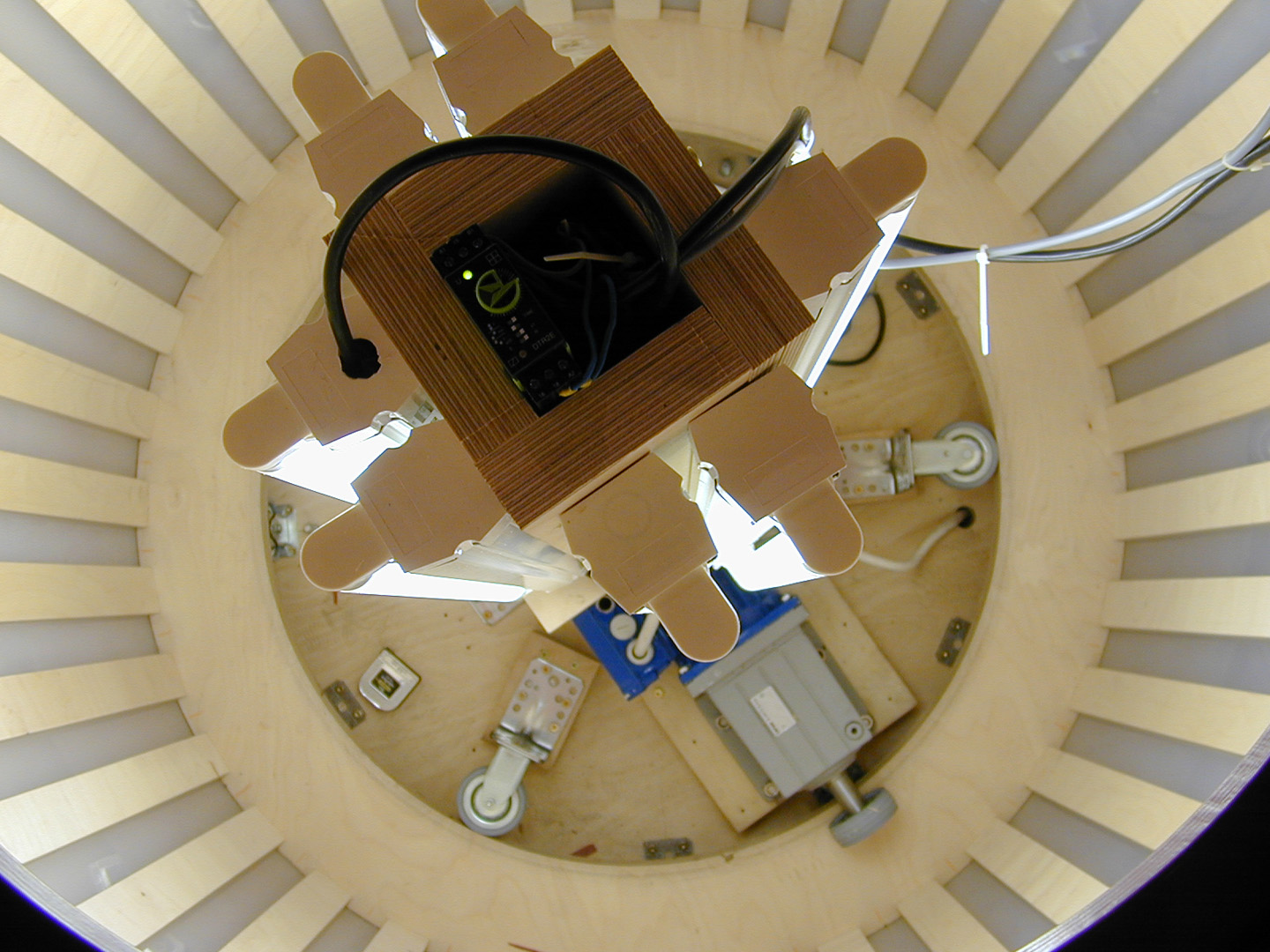 Die Besucher laufen im Tretrad, durch dessen Bewegung wird ein Korb mit Äpfeln